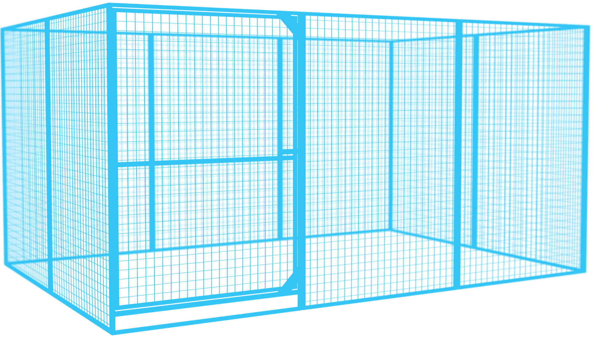 Ściany i drzwi wchodzące w skład kojca SAMSON STRONG (siatka) mają szerokość 1200 mm, a wysokość 1800 mm. Wykonane zostały z ramy z profilu stalowego 25x25x1,5 mm, które wypełnia siatka zgrzewana o oczku kwadratowym 50x50x3 mm.