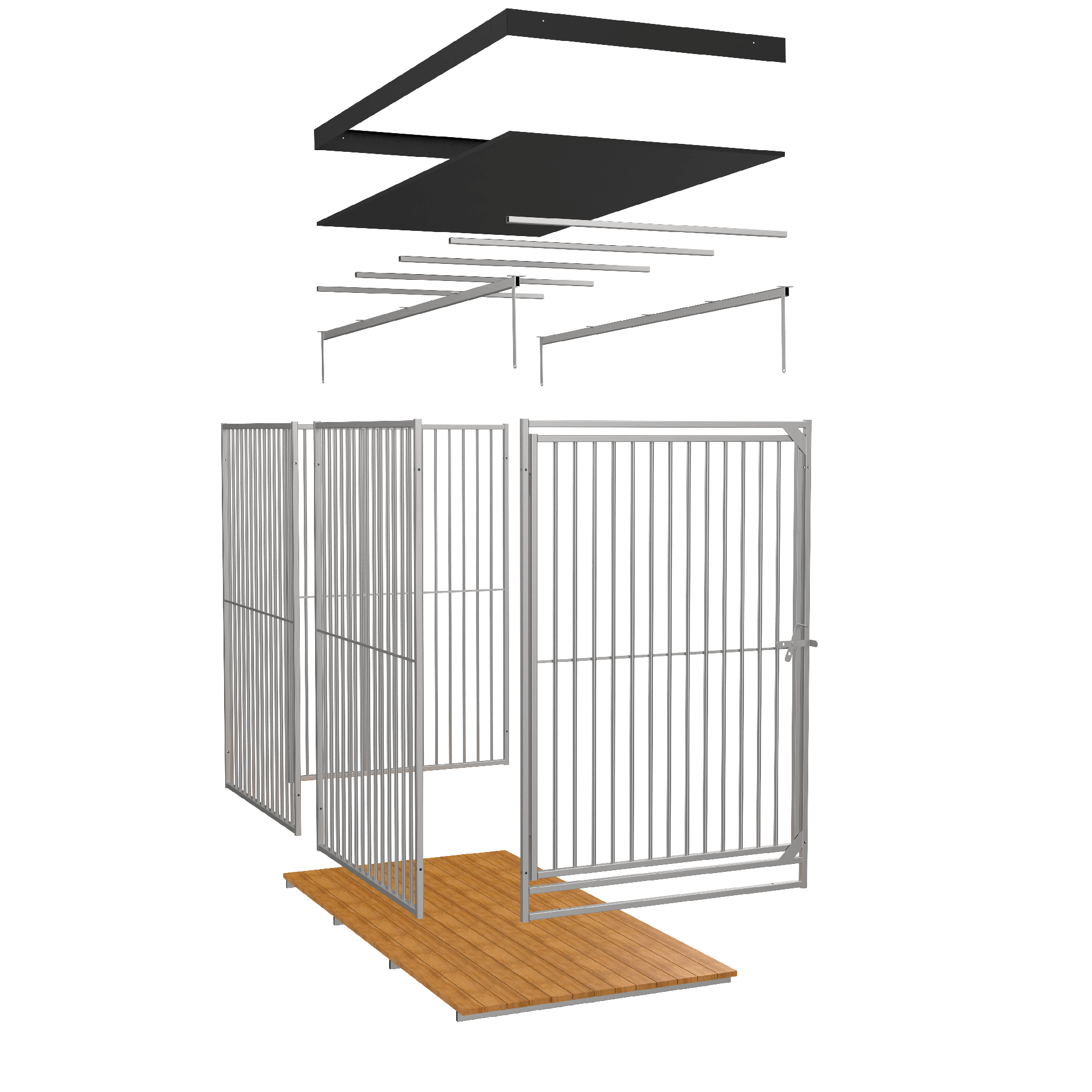 Dbając o komfort i dobrostan czworonożnych przyjaciół, oferujemy specjalne rozwiązania, które pozwolą stworzyć im odpowiednie miejsce wypoczynku. Nasza oferta obejmuje możliwość zakupu podłogi oraz zadaszenia dostosowanych do wymiaru kojca dla psa. Wysokość całkowita kojca z dachem i podłogą to 2030 mm z przodu i 1960 mm z tyłu. Dach na odpowiedniej wysokości pozwala posprzątać kojec bez konieczności schylania się.